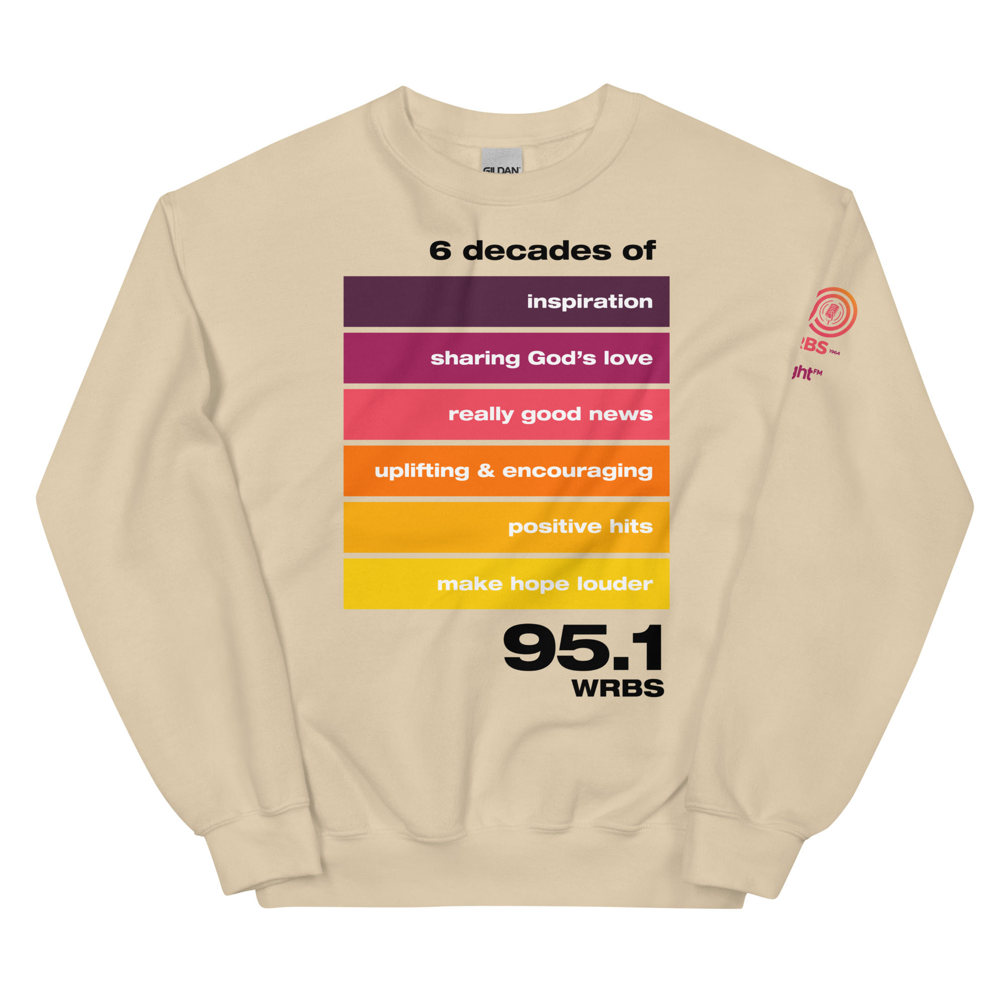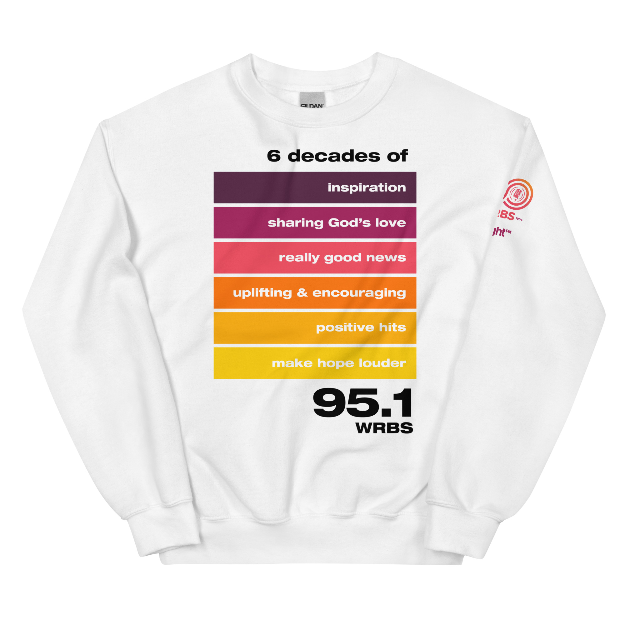 To celebrate our 60th anniversary, this 6 Decades design features the slogan from each decade, 1964 – 2024. This sweater shirt is a classic fit, pre-shrunk, thatโs made with air-jet spun yarn for a soft feel.